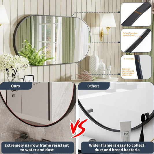 50X100cm Arched Oval Black Decorate Mirror Metal Frame for Bathroom, Entryway, Living Room Vertical & Horizontal Hang